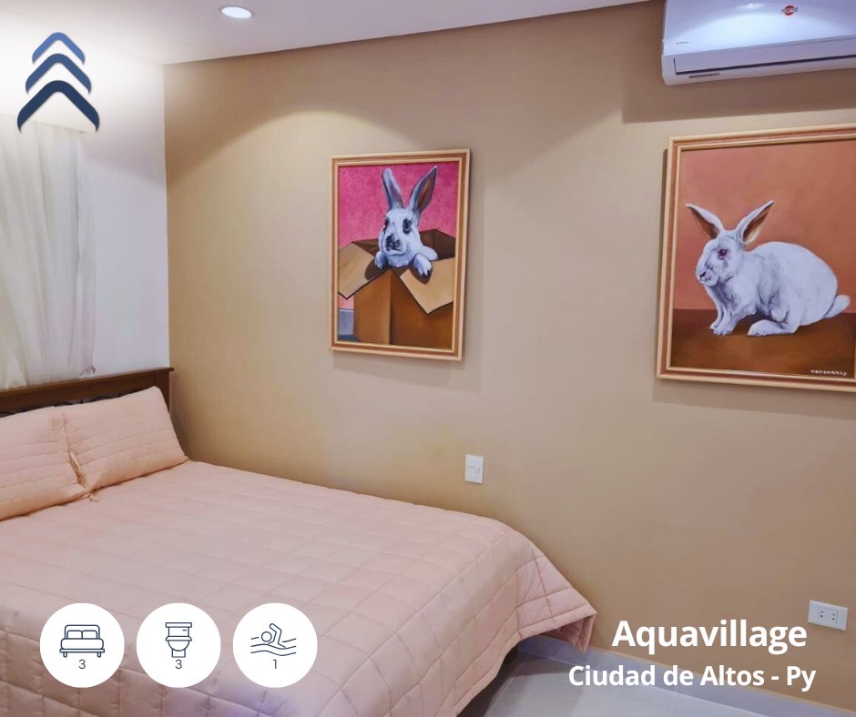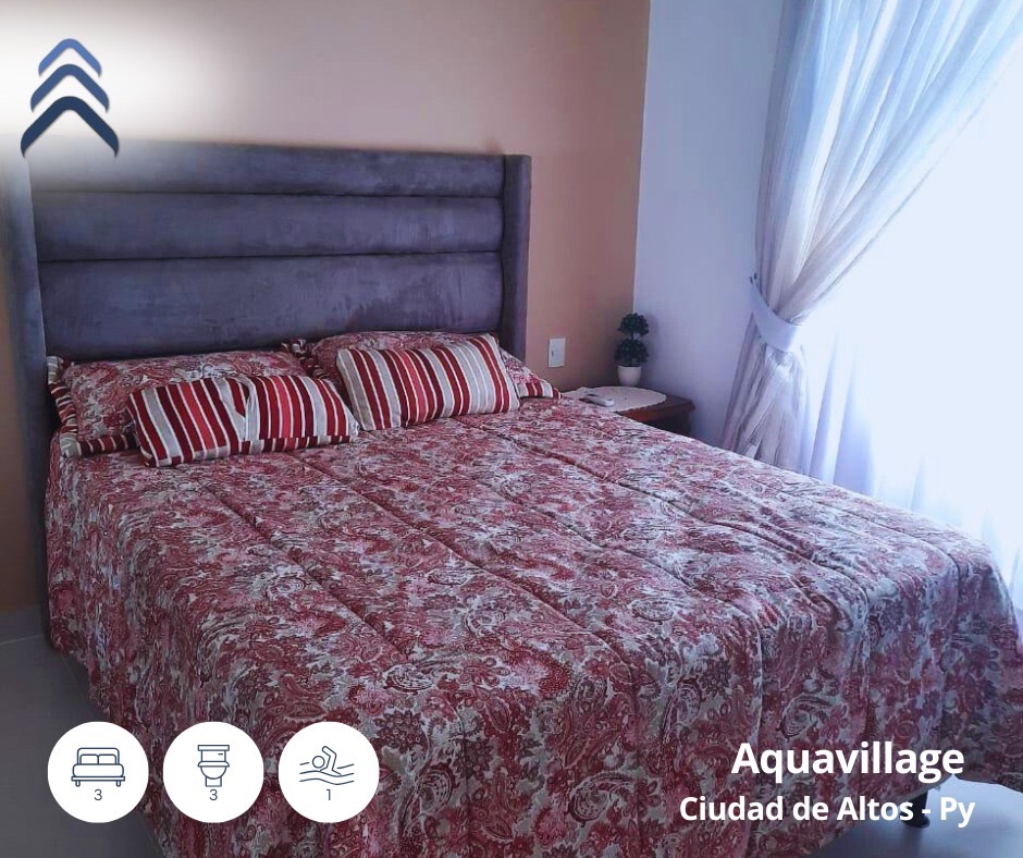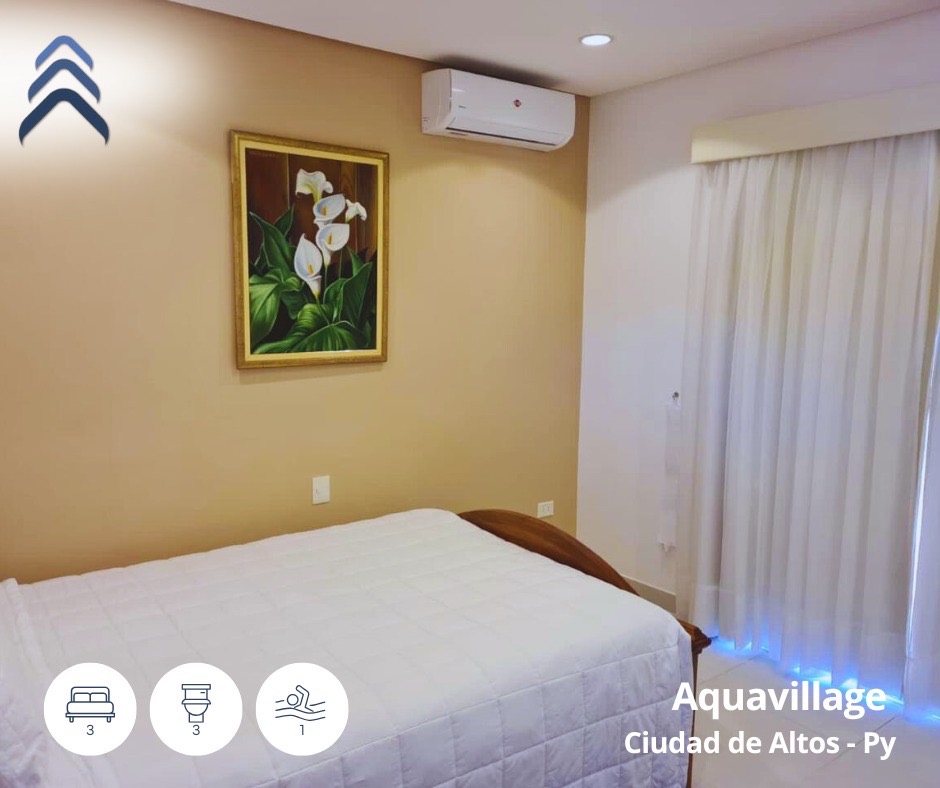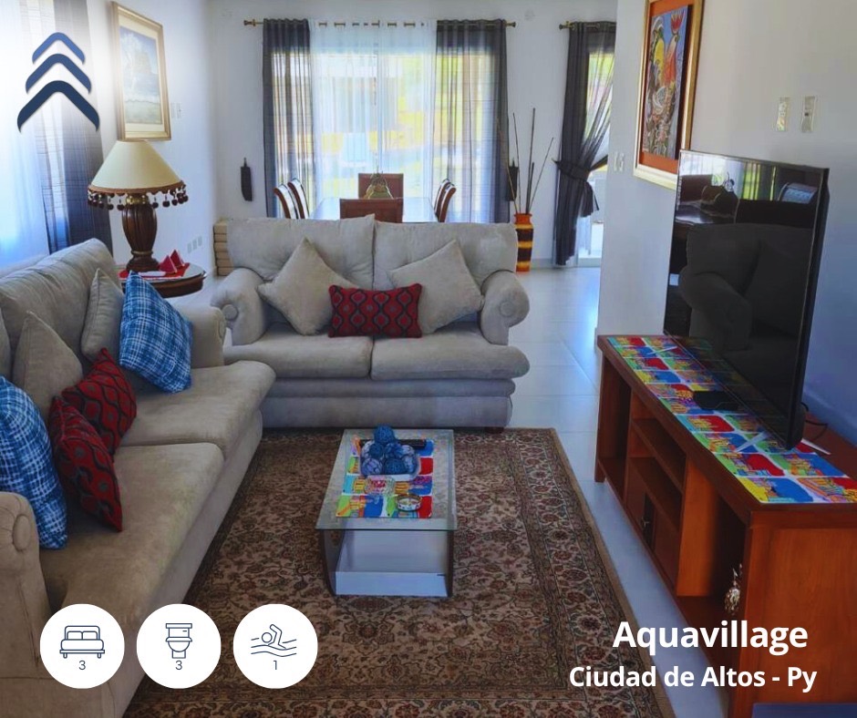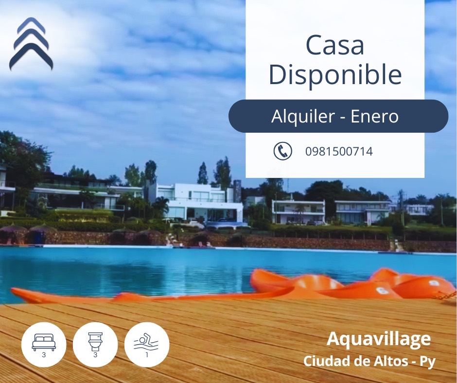 Ubicada en el exclusivo Condominio Aquavillage , en Altos, esta impresionante casa en alquiler ofrece un estilo de vida de lujo en un entorno seguro y privado. Con una superficie total de 580m2, de los cuales 200 m² son cubiertos, esta propiedad destaca por su distribución funcional y moderna. Cuenta con tres amplios dormitorios y tres baños, asegurando comodidad y privacidad para toda la familia. La cocina, equipada con un desayunador, se integra perfectamente con el comedor y el living, creando un espacio ideal para reuniones familiares y entretenimiento.
